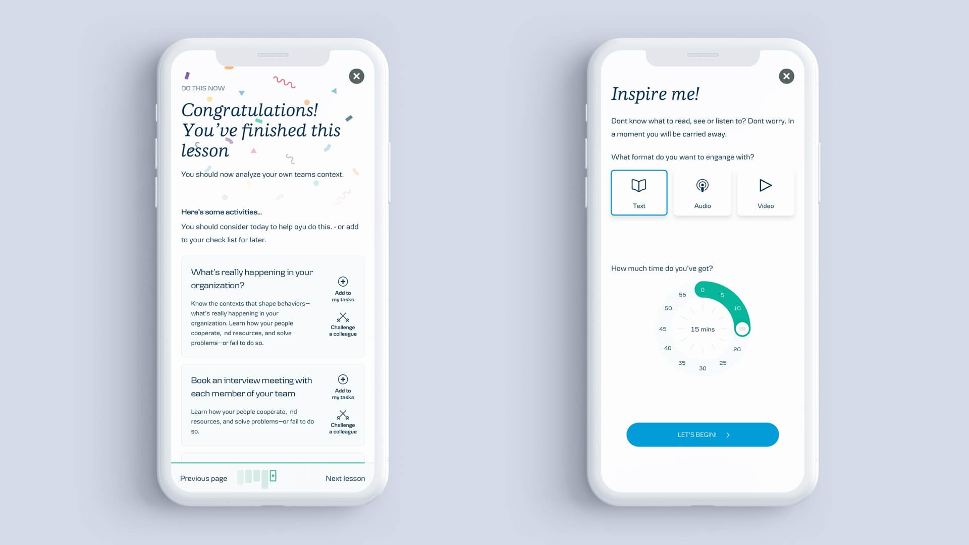 We know managers are busy people by trade, so we pitched an app that enabled the managers to utilize their commute or other situations where they had some spare time and would use it for learning or getting inspired.
